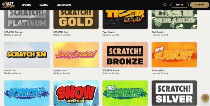 BetMGM Casino is the preferred destination for anyone who enjoys scratch cards from Hacksaw Gaming. This software provider offers some of the most straightforward and nostalgic scratch-off experiences. At BetMGM, you’ll find dozens of Hacksaw Gaming scratch cards, including favorites like Happy Scratch and The Perfect Scratch. Make sure to check out their full selection of instant-win games, too.