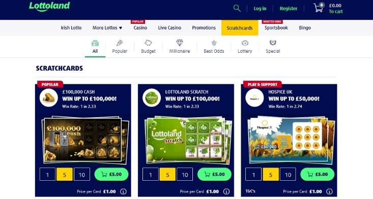 Lottoland is the ultimate gaming hub for lottery fans in the UK. This gambling site has a dedicated “Scratchcard” page where you can play with as little as 5p per card to win millions. You’ll find favourites like Win-Win Charity Scratch, Stuffed with 100s, Instant Millionaire, and £100,000 Cash. If you want to enjoy online scratch cards from the National Lottery, Lottoland is a must-visit.