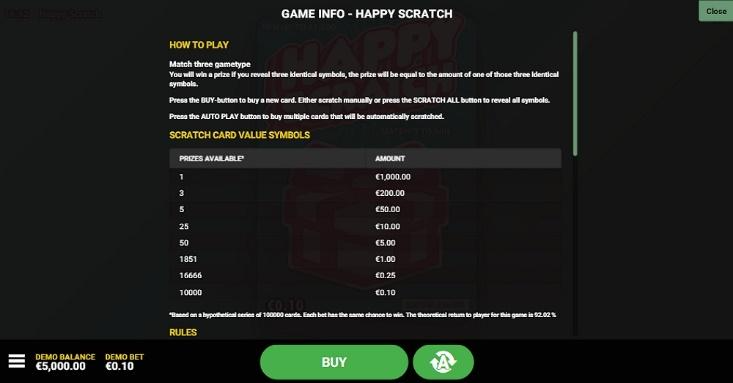 Here’s how the paytable of Hacksaw Gaming’s Happy Scratch looks: