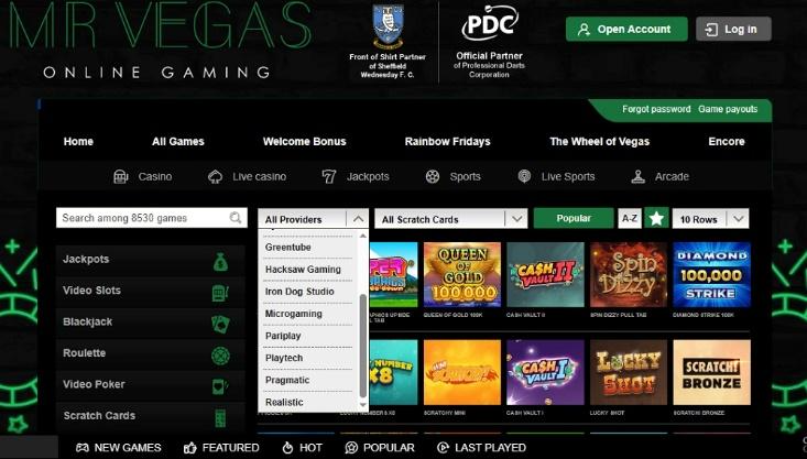 Topping the list is none other than the popular Mr Vegas Casino. This platform boasts an extensive game library with over 8,500 titles, including more than 60 scratch cards. Mr Vegas offers a diverse scratch-off experience with games from top providers like Hacksaw Gaming, Iron Dog, Microgaming, and Playtech. You can even filter the games library based on your preferred software provider.